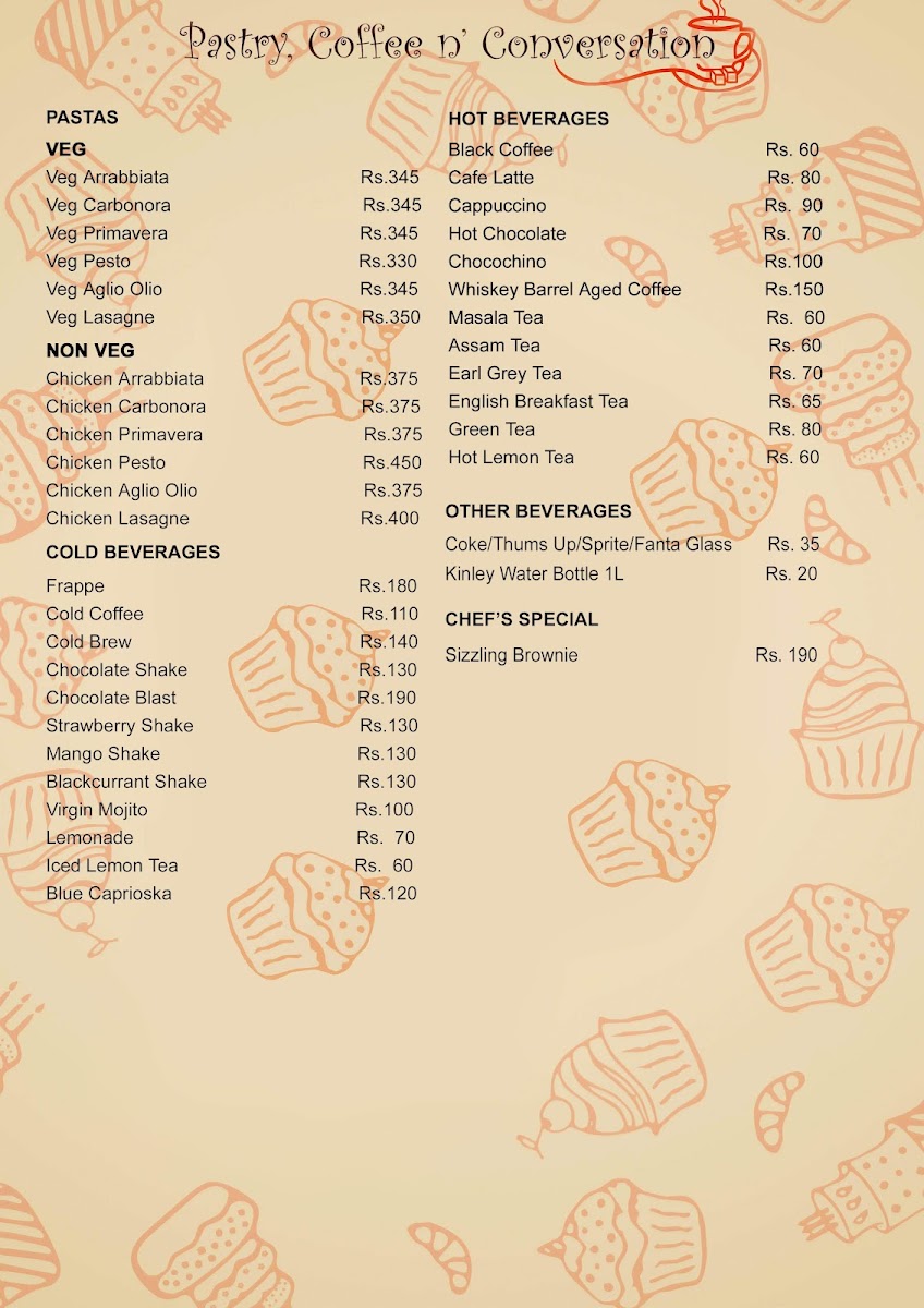 Welcome to Pastry Coffee n' Conversation, a charming café nestled in Siripuram Cir, Visakhapatnam. This delightful spot offers an inviting menu brimming with flavorful options, perfect for coffee enthusiasts and food lovers alike.